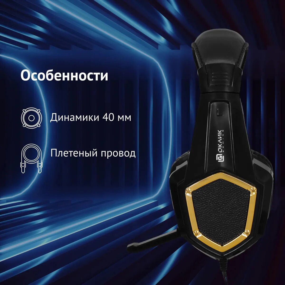 Игровая гарнитура проводная Oklick HS-L310G черный золотистый