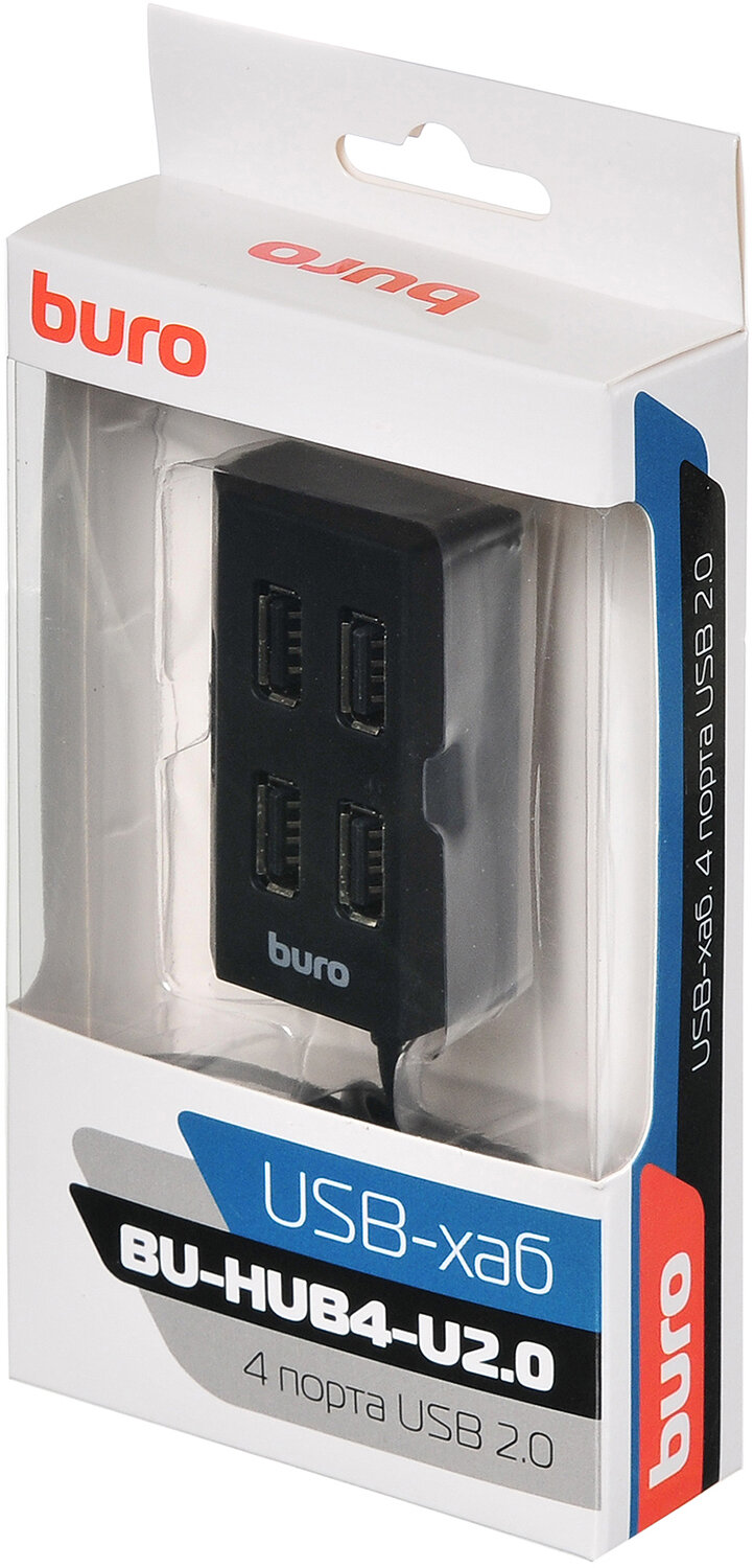 Концентратор USB 2.0 BURO BU-HUB4-U2.0 4 x USB 2.0 черный
