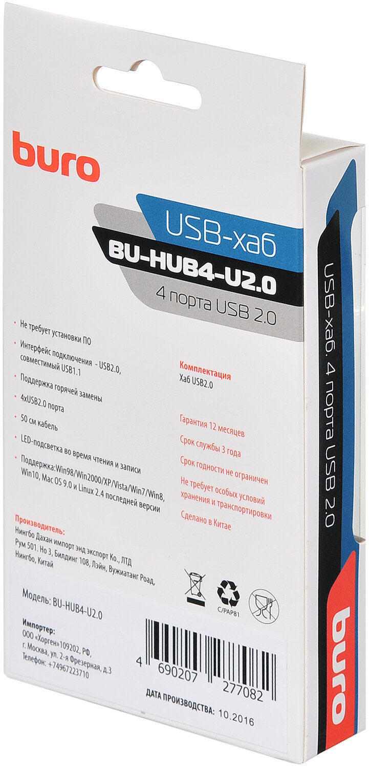 Разветвитель с поддержкой горячей замены Buro BU-HUB4-U2.0 обладает компактным размером и очень прост в применении. Модель оснащена 4 интерфейсами USB 2.0, а также LED-подсветкой во время чтения и записи.