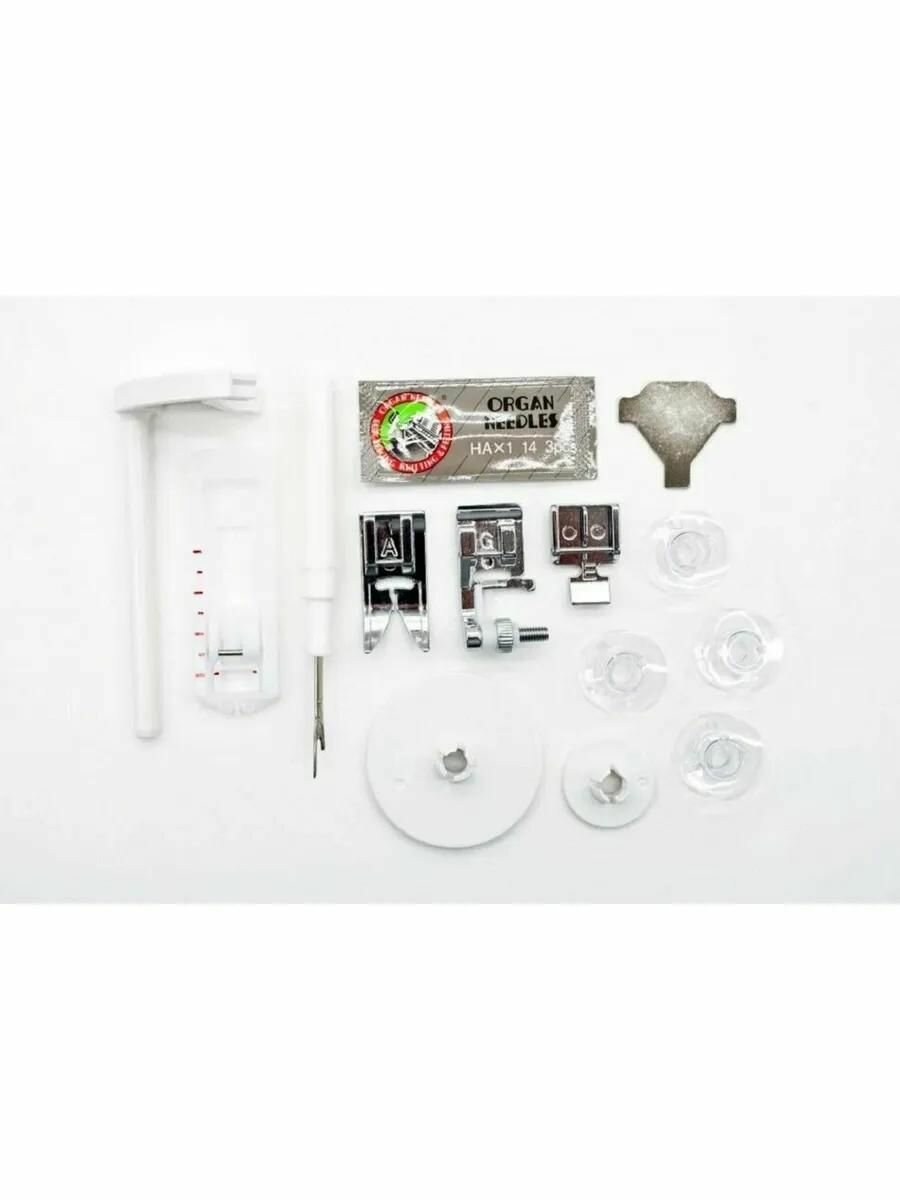 | Прочие особенности и свойства | Рукавная платформа Нитевдеватель Отсек для аксессуаров Строчки:потайная, эластичная потайная Электронный стабилизатор усилия прокола |