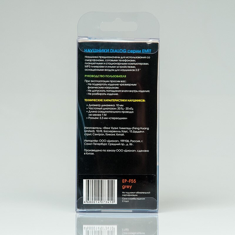 Модель использует стандартный разъем 3,5 мм, поэтому использовать Dialog EP-F55 можно в связке с любыми гаджетами: смартфонами, планшетами, MP3-плеерами и так далее.