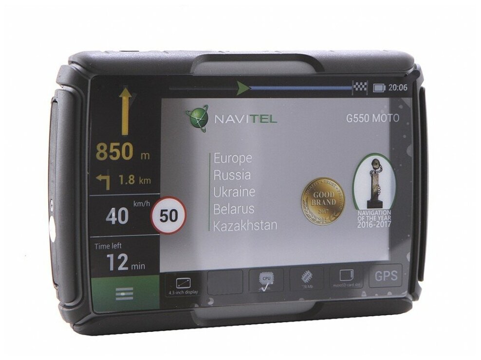 | Прочие особенности | Процессор MSB 2531 Частота процессора 800 МГц Оперативная память 256 МБ DDR Возможность загрузки дополнительных карт есть Бесплатное обновление карт есть Предупреждения о камерах контроля скоростиесть Функция расчета маршрута Предустановленные карты: Австрия, Албания, Андорра, Беларусь, Бельгия, Болгария, Босния и Герцеговина, Ватикан, Великобритания, Венгрия, Германия, Гибралтар, Греция, Дания, Исландия, Испания, Италия, Казахстан, Кипр, Латвия, Литва, Лихтенштейн, Люксембург, Македония, Мальта, Молдавия, Монако, Нидерланды, Норвегия, Остров Мэн, Польша, Португалия, Россия, Румыния, Сан-Марино, Сербия, Словакия, Словения, Украина, Финляндия, Франция, Хорватия, Черногория, Чехия, Швейцария, Швеция, Эстония Комплект поставки Мотонавигатор NAVITEL G550 Адаптер ЗУ для мотоцикла Адаптер ЗУ для автомобиля Док-станция Держатель для мотоцикла Держатель для автомобиля USB кабель Пластиковый пинцет Руководство пользователя Гарантийный талон |