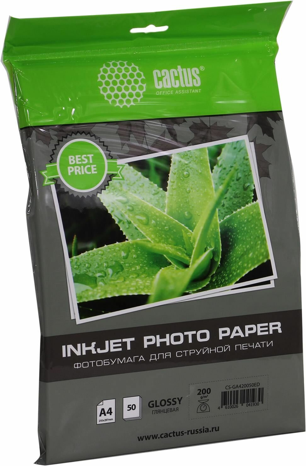 Фотобумага Cactus CS-GA420050ED A4 200г/м2 50л белый глянцевая для струйной печати