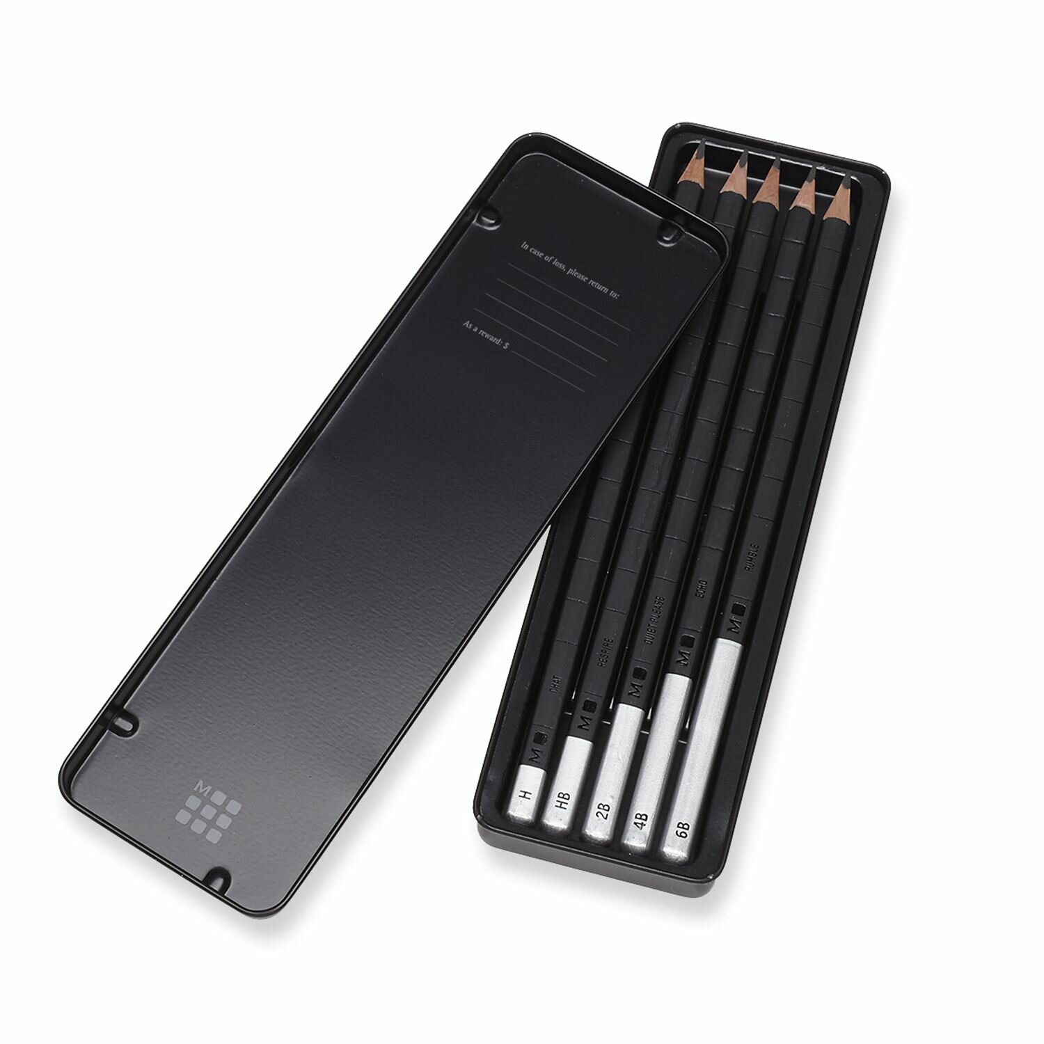 Moleskine Drawing Set EW7P05GPHA представляет собой набор чернографитовых карандашей, которые поставляются в металлическом пенале. Толщина грифеля каждого карандаша составляет 3 мм, что гарантирует высокую четкость записей, а также комфортное рисование и письмо в блокнотах Moleskine. Всего в комплекте имеется 5 карандашей с разной жесткостью.