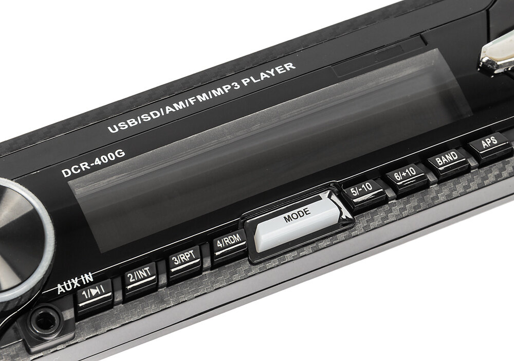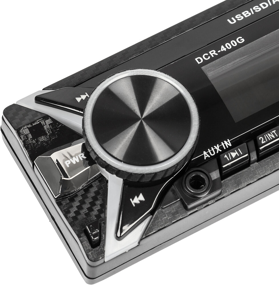 К основным особенностям модели Digma DCR-400 можно отнести наличие информативного ЖК-дисплея, возможность чтения карт памяти SD, подсветку функциональных клавиш, а также разъем USB и вход AUX 3.5 мм на фронтальной панели. Также имеется высокоскоростной цифровой FM-тюнер с памятью на 18 радиостанций.