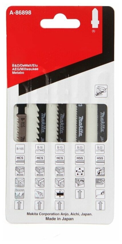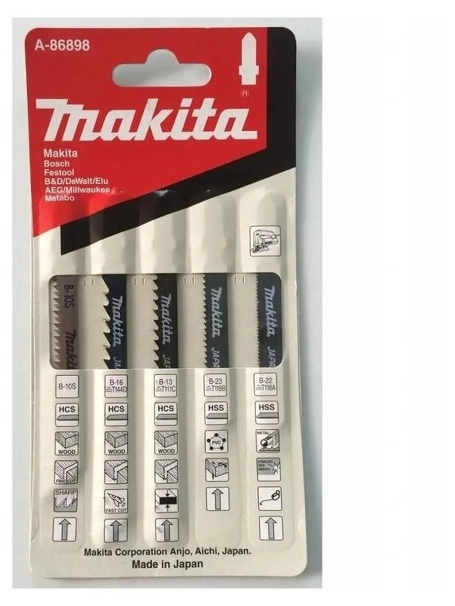 Пилки для лобзика (набор) MAKITA A-86898 5шт.: В-10SВ-13В-16В-22В-23