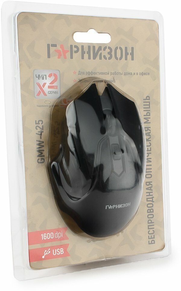 Гарнизон Мышь беспров. GMW-425 чип X2 черный 1600 DPI 3 кн.+ колесо-кнопка блистер