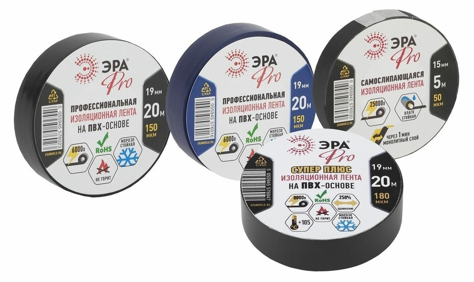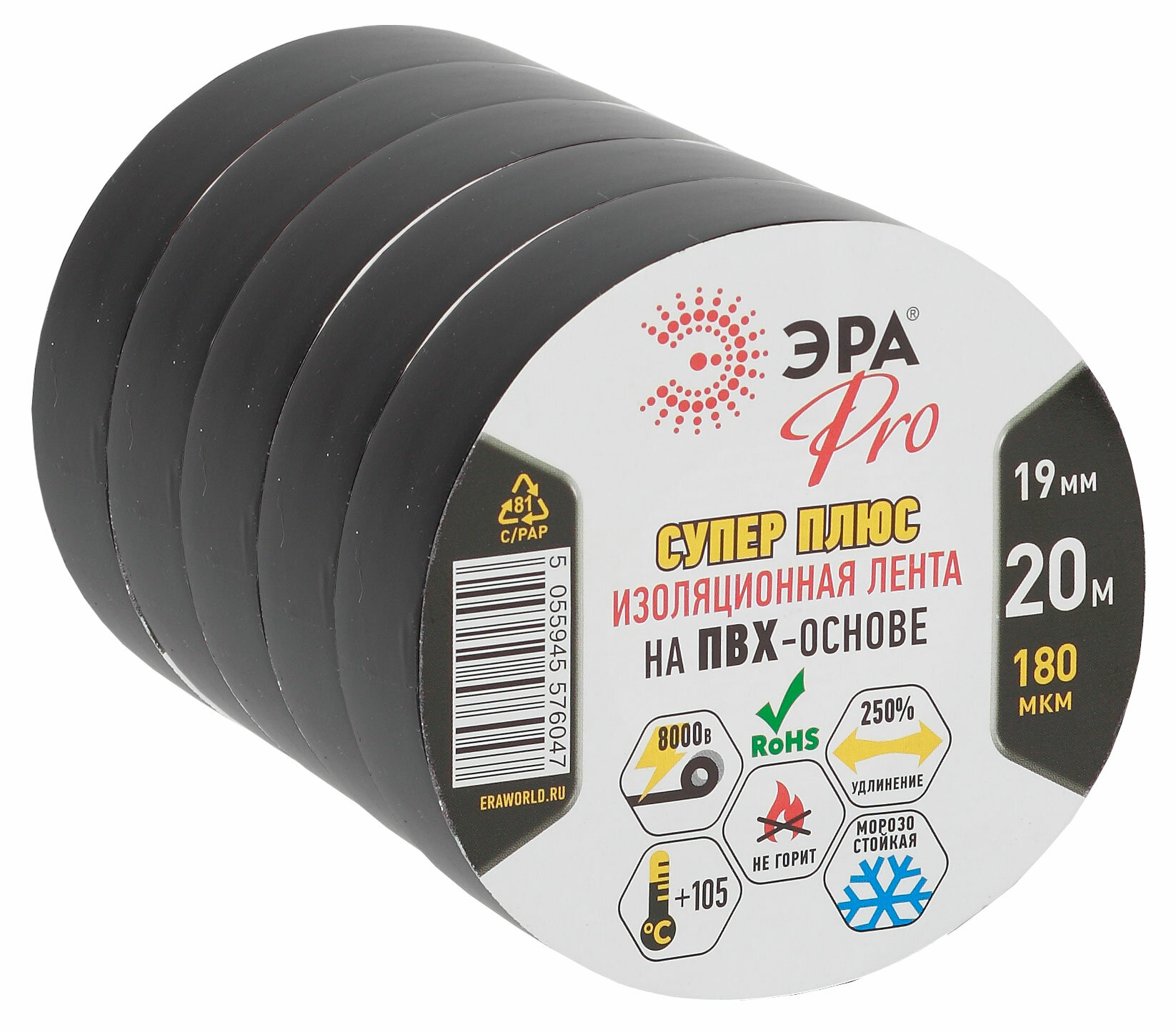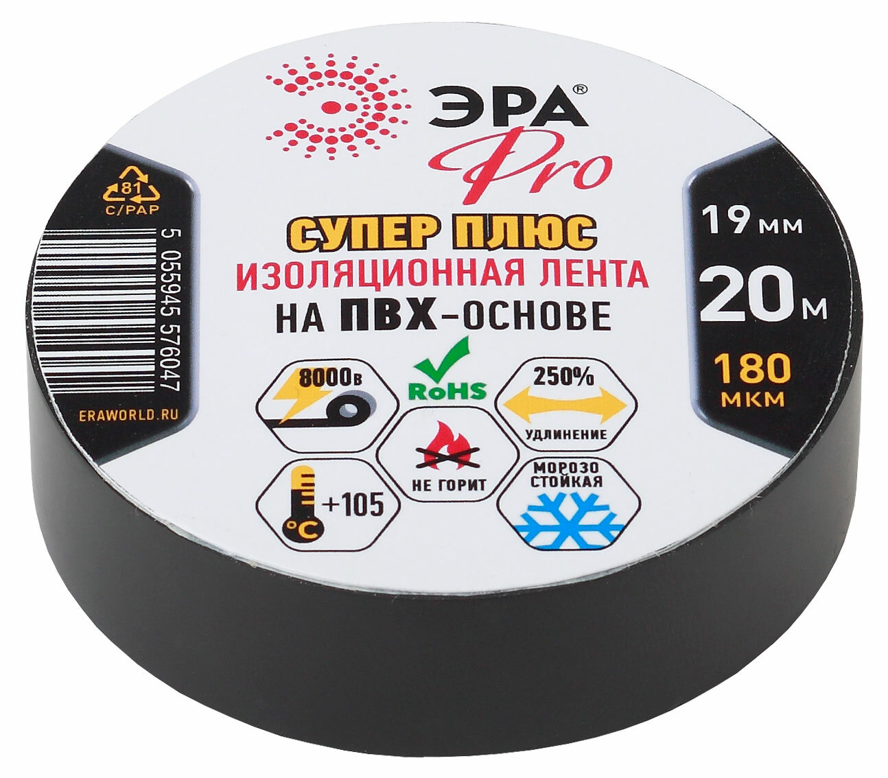 ЭРА Б0027915 PRO ПВХ-изолента СуперПлюс 19ммх20м 180мкм черная Pro Супер Плюс