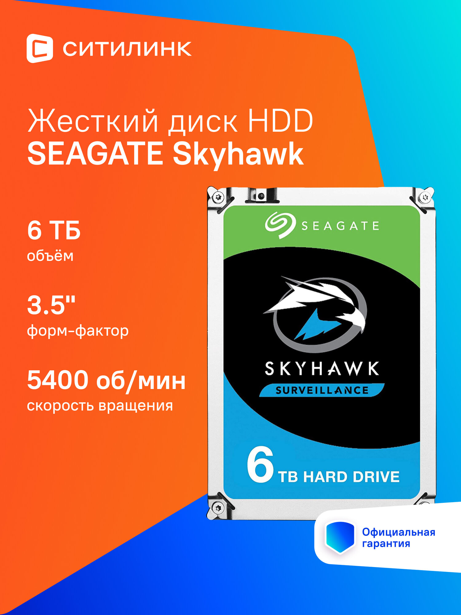 Жесткий диск Seagate Original SATA-III 6Tb ST6000VX001 Skyhawk (5400rpm) 256Mb 3.5" (Skyhawk ST6000VX001)
