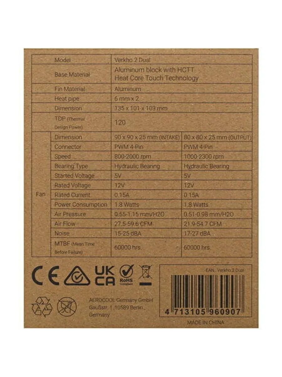 Кулер Aerocool Verkho 2 Dual имеет универсальную совместимость, что повышает его практичность и адаптирует его под большинство брендов. Кулер эффективно охлаждает систему и повышает производительность работы устройства.