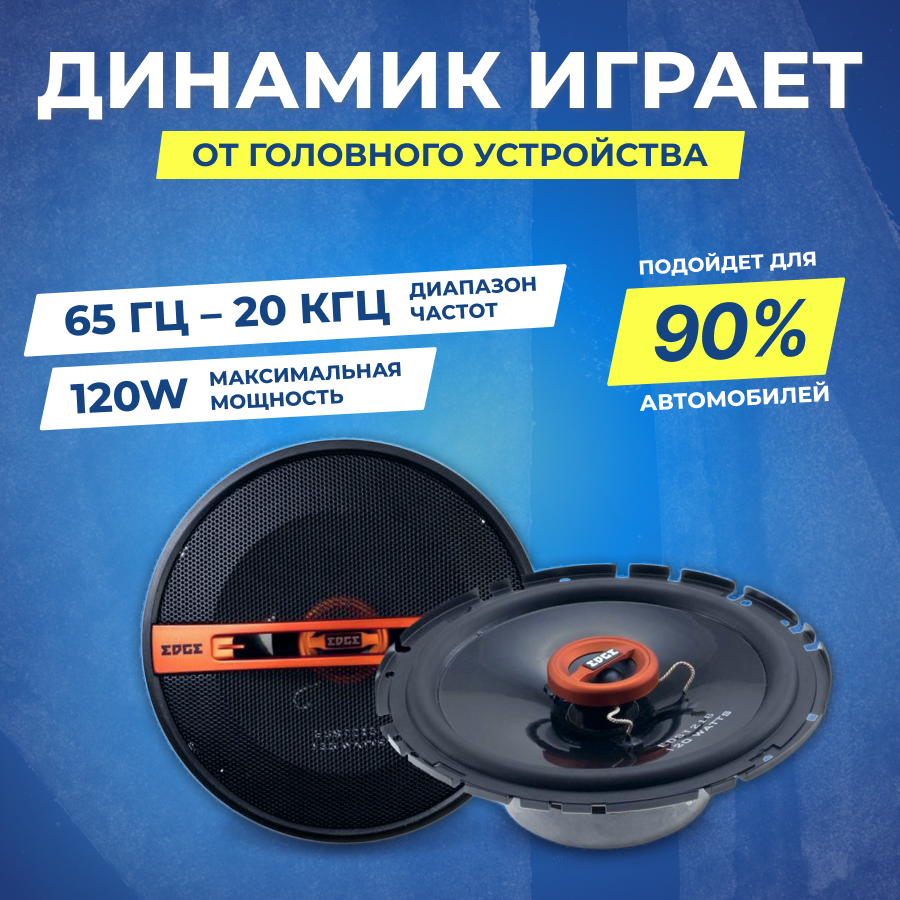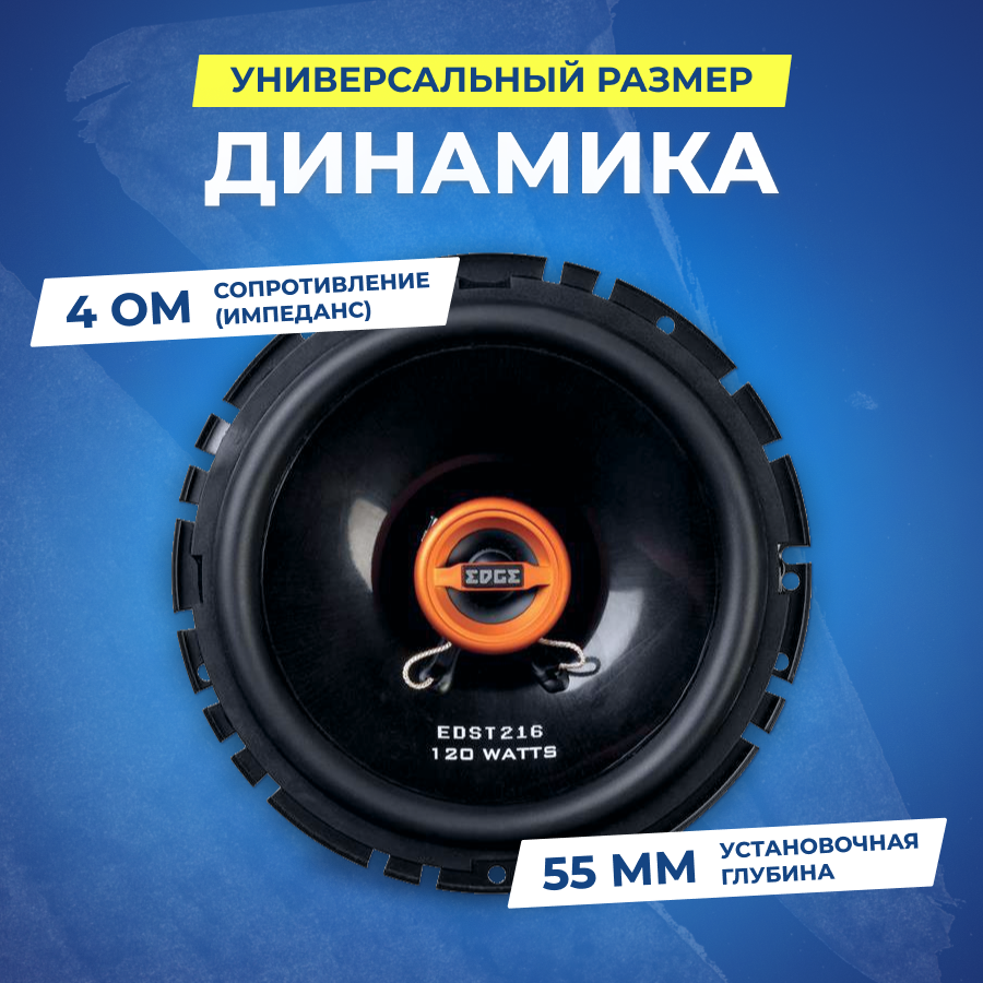 Колонки автомобильные Edge EDST216-E6 120Вт 86дБ 4Ом 16см (6.5дюйм) (ком.:2кол.) коаксиальные двухполосные