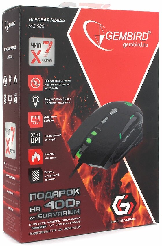 На сегодняшний день товар «Gembird MG-600 USB {Мышь игровая черн код Survarium 7кн 3200DPI подсвет 4 цв ПО каб ткан 1.8м}» можно купить с кешбеком в 1 магазине: Яндекс.Маркет
