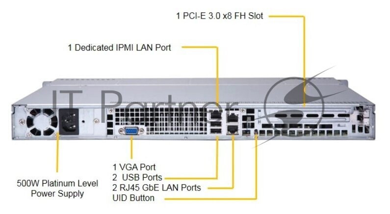 | Прочее | Серверная платформа Supermicro SuperServer 6019P-MT SYS-6019P-MT, позволяет установить 2 процессора с разъемом LGA 3647, 8 модулей памяти DIMM DDR4 и 4 диска формата 3.5" с возможностью горячей замены, предустановлен 1 блок питания мощностью 500 Вт. |