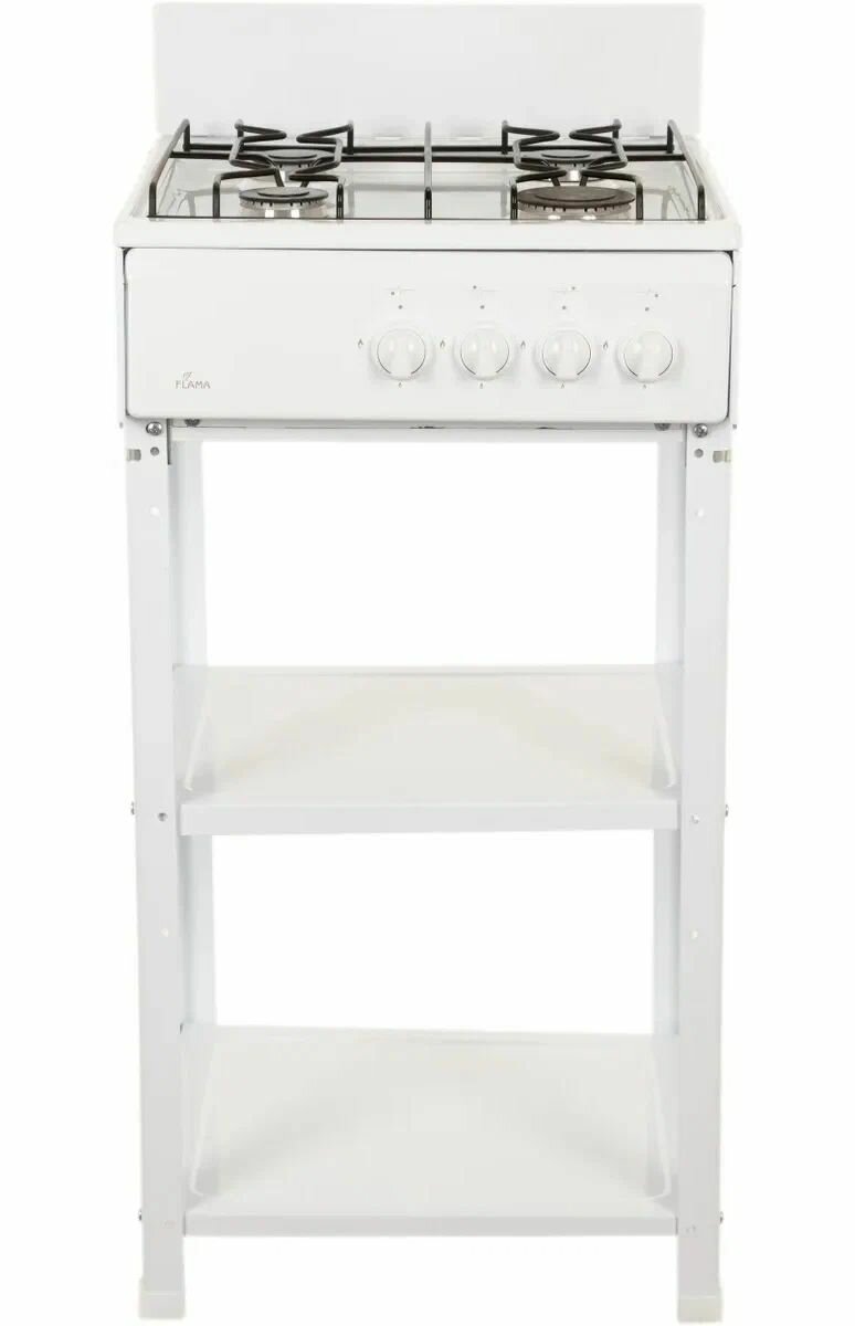 | Описание | Flama AVG 1401 W - 4-х горелочная газовая плита с металлической крышкой, прутковой решеткой и двумя пполками для посуды и кухонных принадлежностей. |