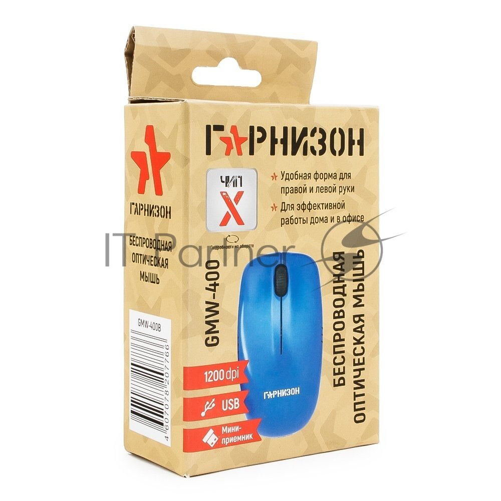 Гарнизон Мышь беспров. GMW-400B, чип X, синий, 1200 DPI, 2 кн.+ колесо-кнопка