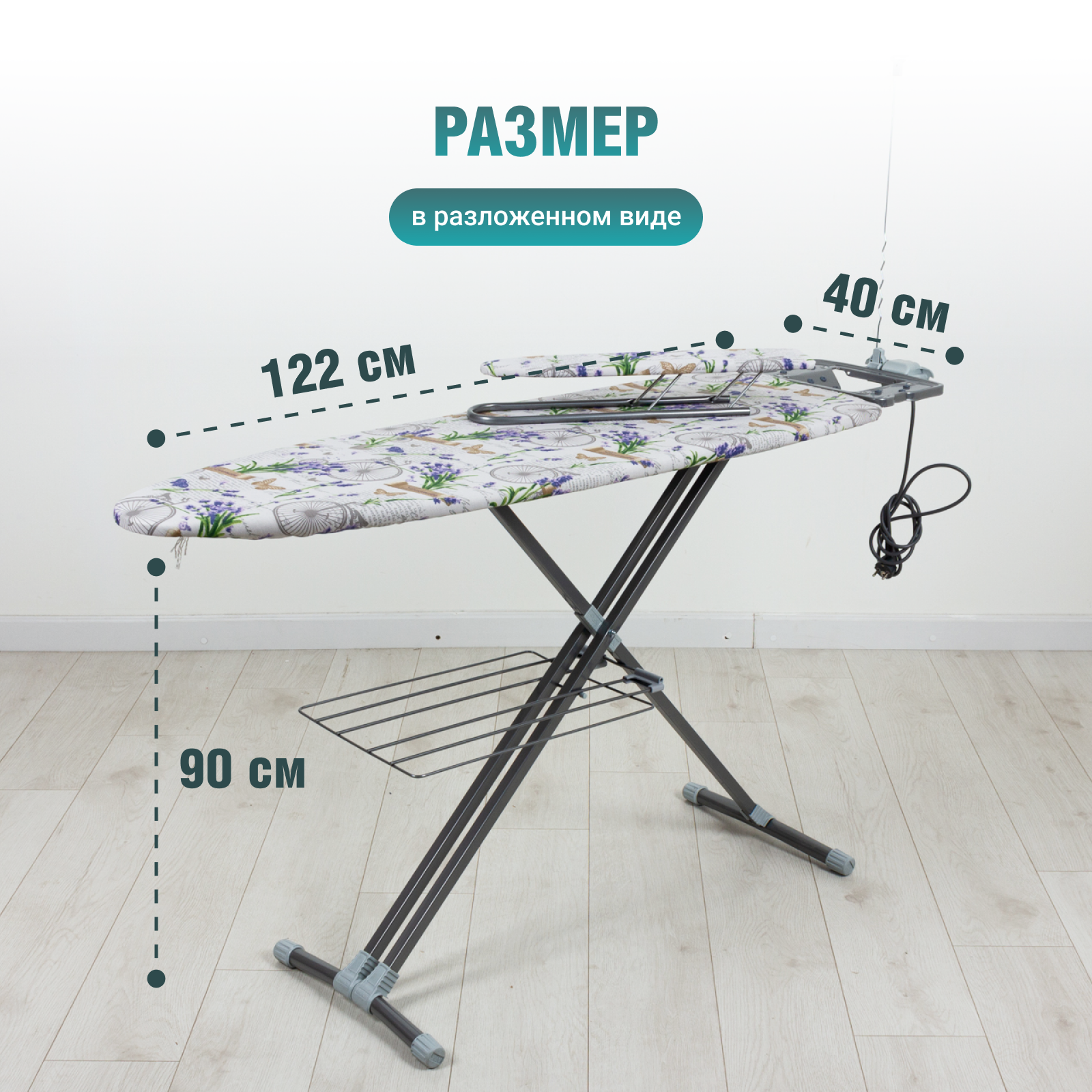| Прочие особенности и свойства | Основа полотна:металл Размер гладильной поверхности, мм:1220х400 Подрукавник |