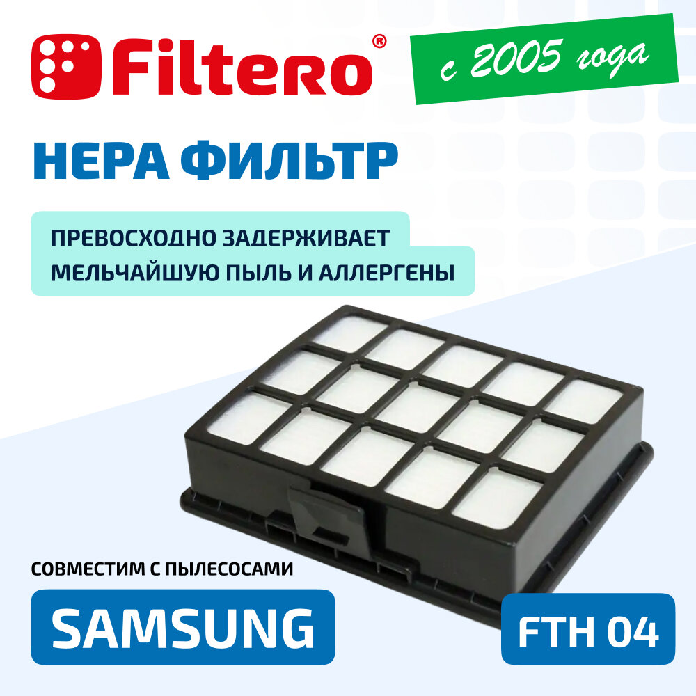 | Прочие особенности и свойства | Фильтр Filtero FTH 04 уровня фильтрации НЕРА Н 12., Препятствует выходу мельчайших частиц пыли и аллергенов из пылесоса в помещение., Фильтр немоющийся., Подлежит замене, согласно рекомендации производителя пылесосов - не реже одного раза за 6 месяцев. |