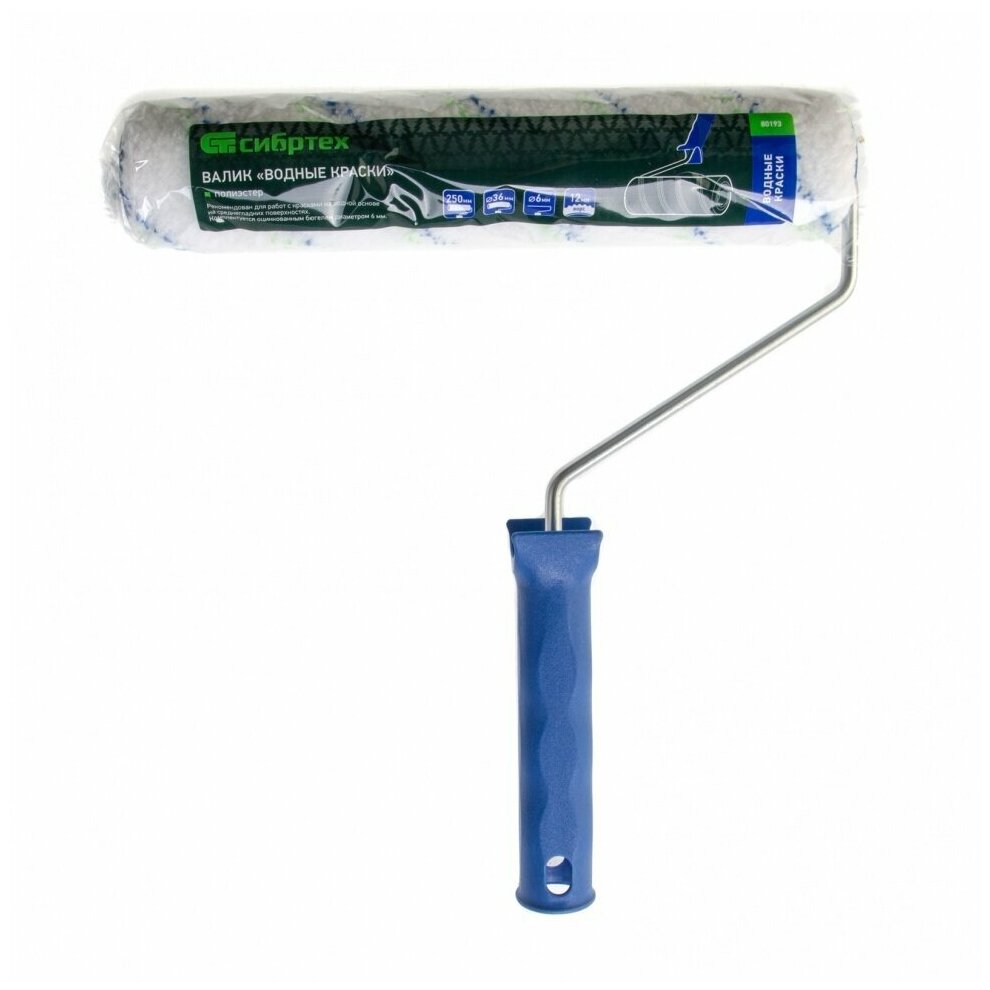 Валик "Водные краски" 250 мм ворс 12 мм D - 48 мм D ручки - 8 мм полиэстер// Сибртех ("Водные краски")