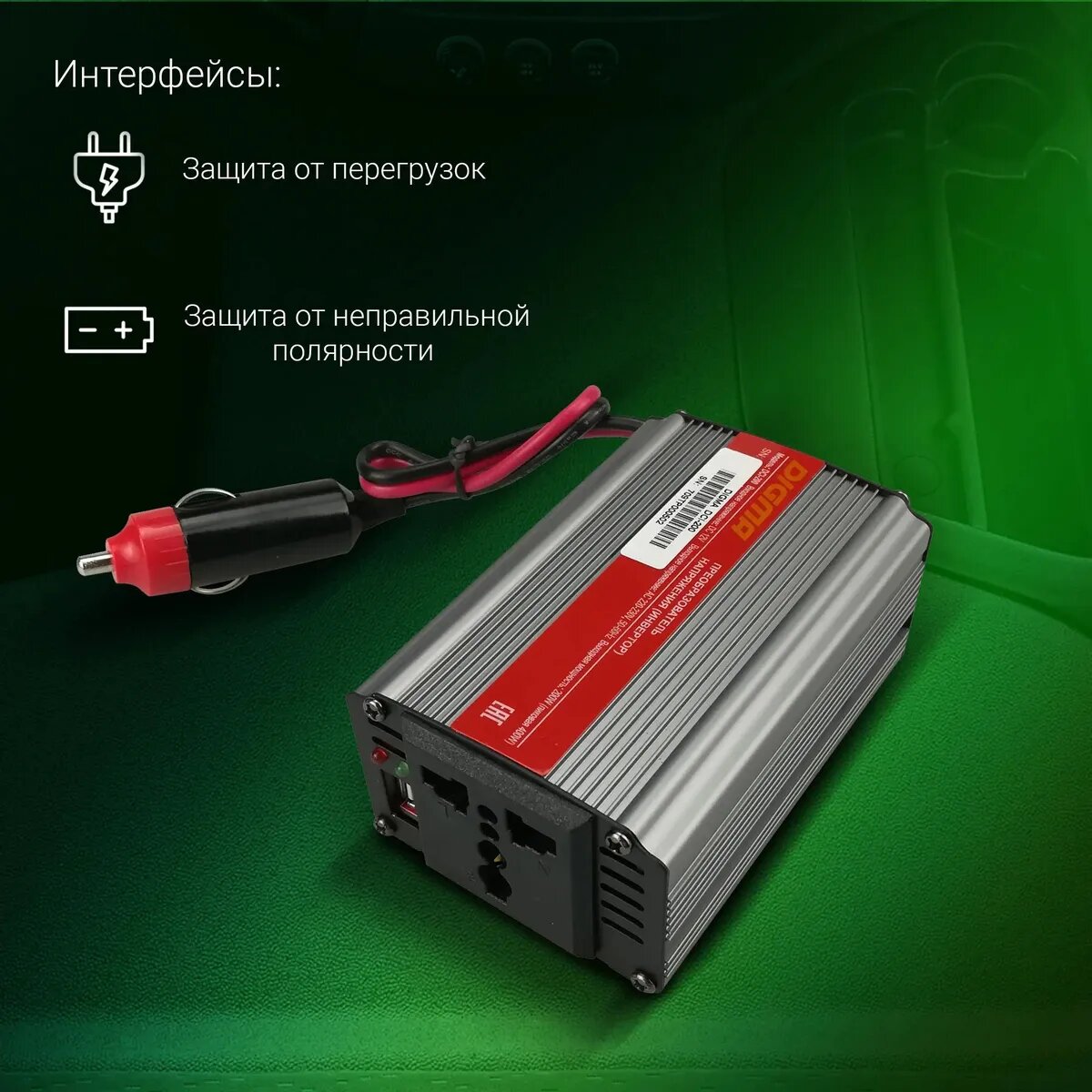 КАК СДЕЛАТЬ В АВТО РОЗЕТКУ 220V? Обзор авто-инвертора Digma DCI-500