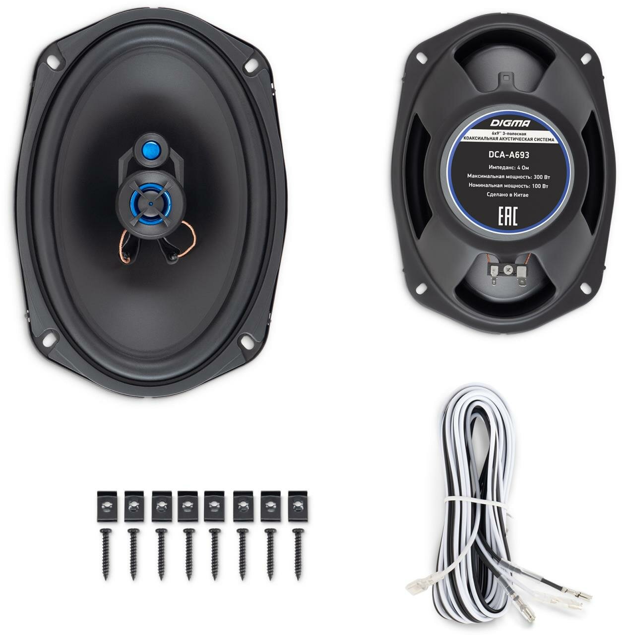 Колонки автомобильные Digma DCA-A693 300Вт 90дБ 4Ом 15x23см (6x9дюйм) (ком.:2кол.) коаксиальные трехполосные