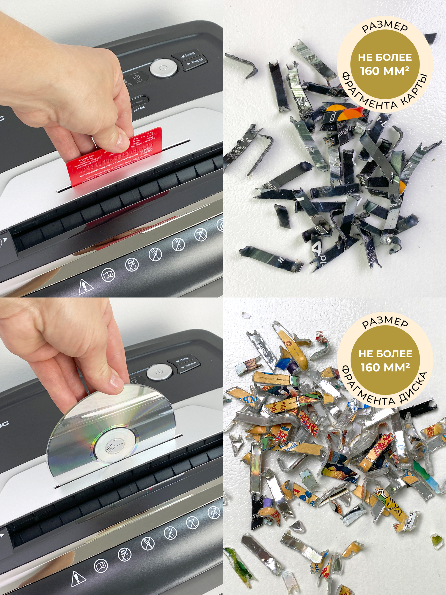 | Уничтожаемые предметы | бумага, CD/DVD, пластиковые карты, скрепки, скобы от степлера |