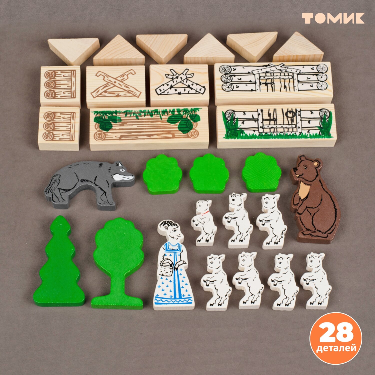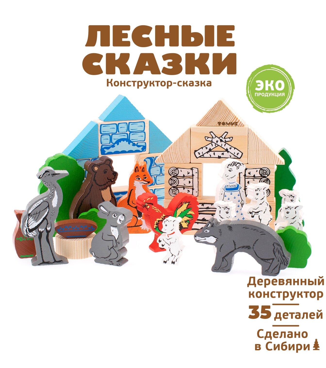 Игрушки из дерева только на первый взгляд кажутся слишком простыми. Но они не просто выдерживают конкуренцию с китайскими аналогами из пластика, а побеждают своих зарубежных «соперников» по всем показателям. Пример тому — детские конструкторы из серии «ТОМИК» для малышей от 3-х лет. «Колобок» — это 18 крупных деревянных деталей и фигурок персонажей самой популярной народной сказки.
