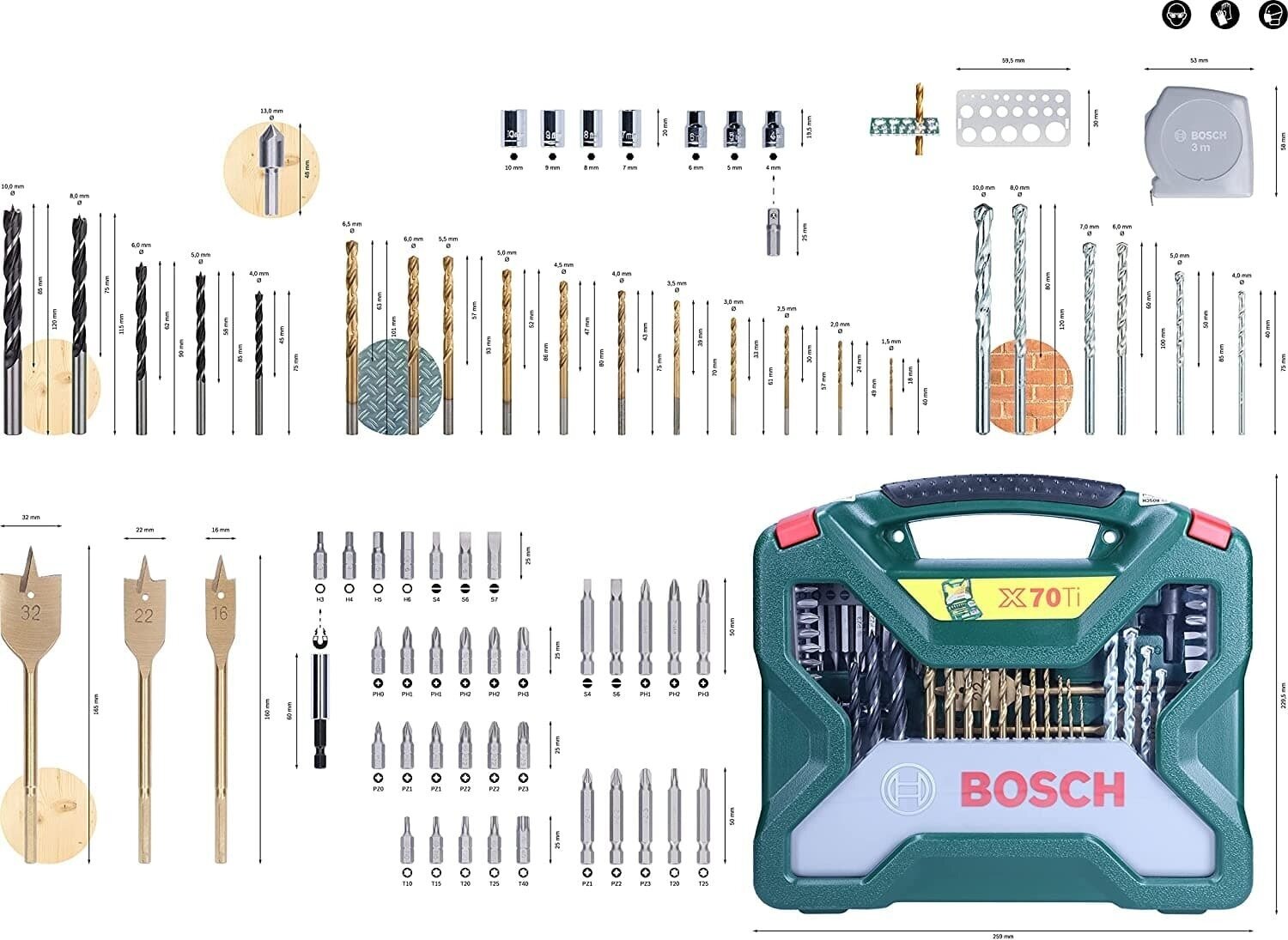 Инструмент многофункциональный Bosch X-Line-70 Набор насадок для дрелей и шуруповертов
