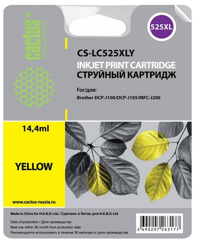 Картридж Cactus CS-LC525XLY желтый, для BROTHER DCP-J100/J105/J200