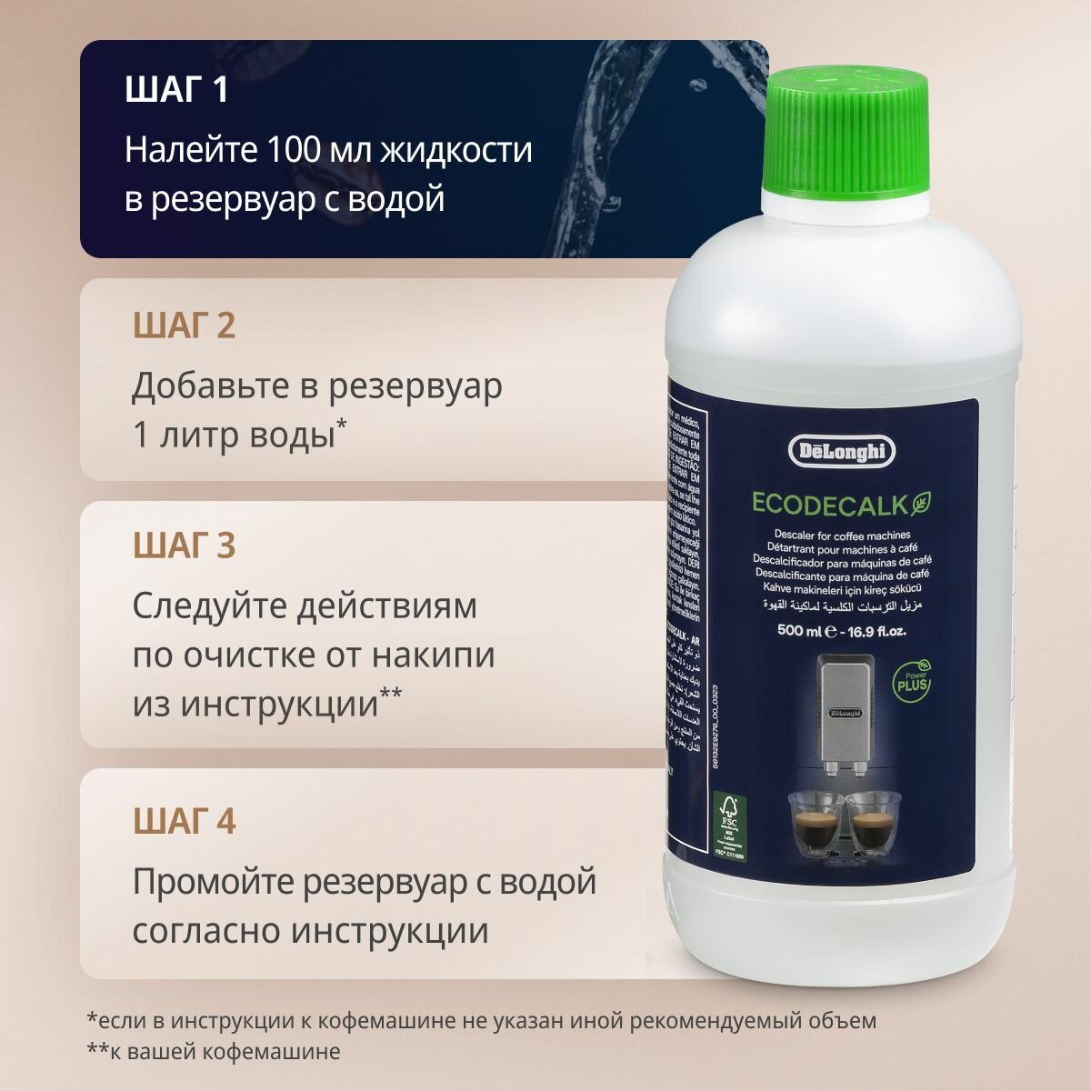 Инструкция по применению очистителя от накипи DeLonghi EcoDecalk DLSC500