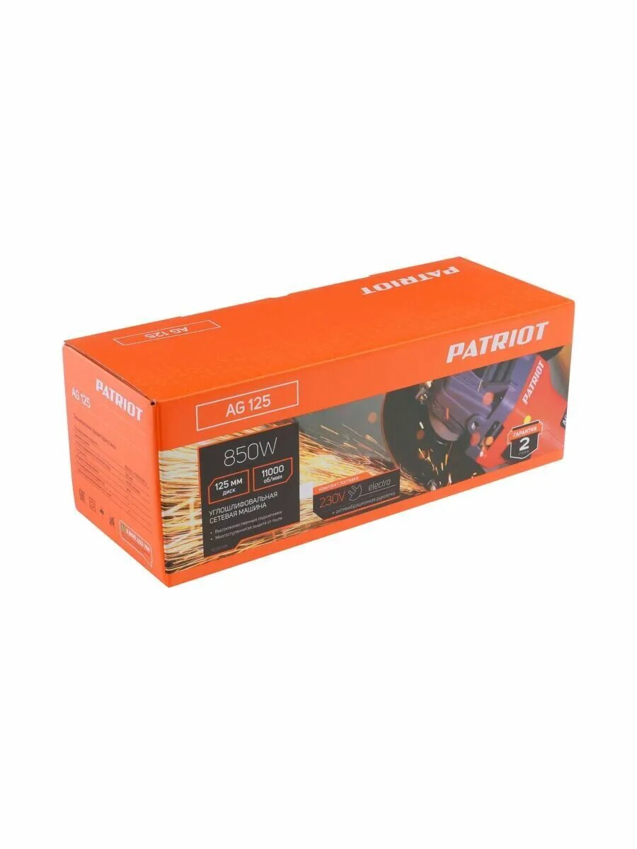 | Прочие особенности и свойства | Эффективная защита оператора за счет использования антивибрационной рукоятки и защитой от случайного выключения., Редуктор этой модели сконструирован так, чтобы не задерживать пыль внутри инструмента и эффективно выводить шлам через вентиляционные отверстия., Удобный хват благодаря двуручной конструкции корпуса УШМ и 3ем позициям установки дополнительной рукоятки. , Для увеличения ресурса инструмента применено бронирование ротора и статора., Быстрая замена оснастки за счет функции безынструментальной блокировки шпинделя., Дополнительное удобство при эксплуатации обеспечивает быстрый доступ к угольным щеткам. , Их можно заменить самостоятельно, не обращаясь в сервисный центр., Прорезиненный сетевой кабель PATRIOT выдерживает низкие температуры и имеет больший срок службы за счет применения качественных материалов, устойчивых к многократным перегибам. |