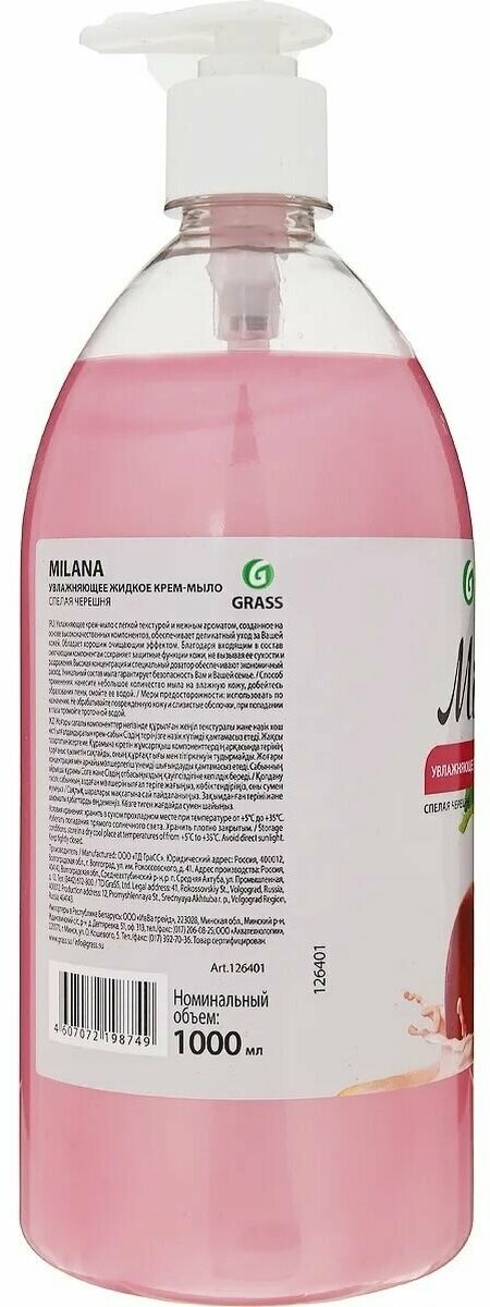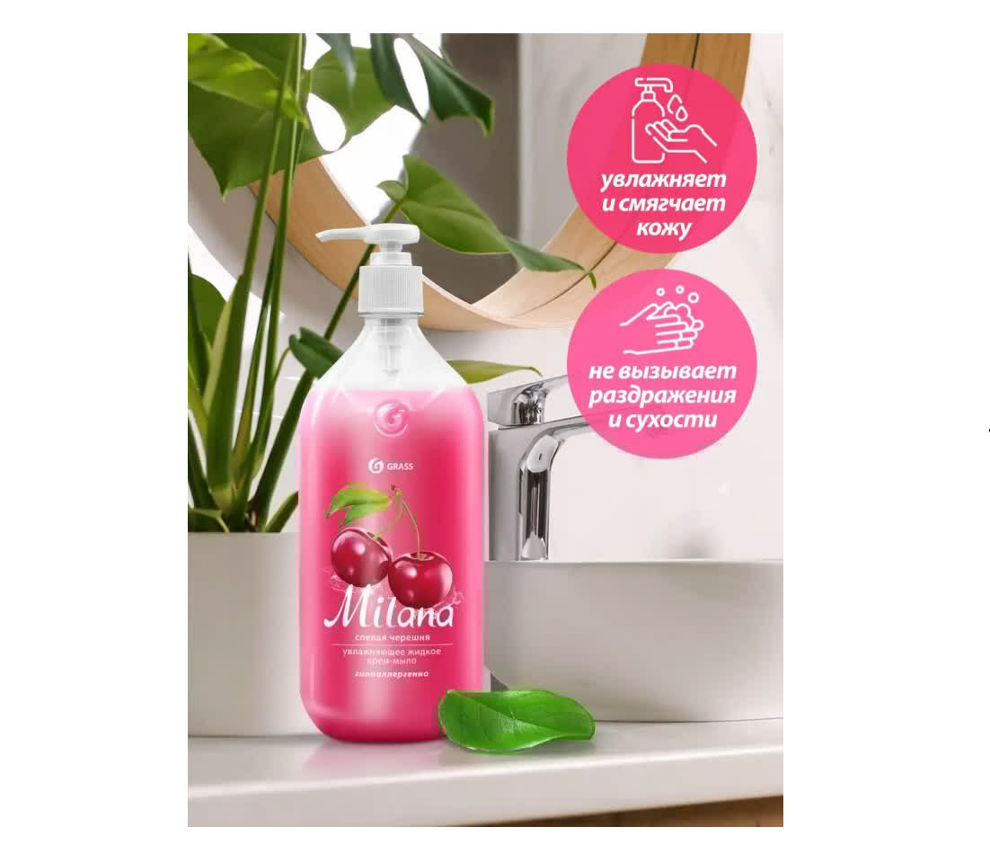 ЖИДКОЕ КРЕМ-МЫЛО "MILANA" (СПЕЛАЯ ЧЕРЕШНЯ) 1 Л С ДОЗАТОРОМ (1/6) "GRASS"