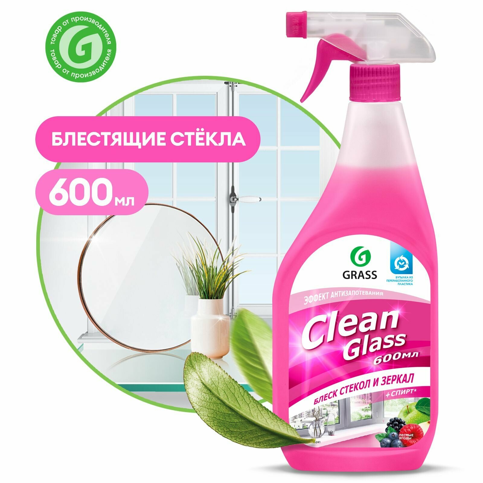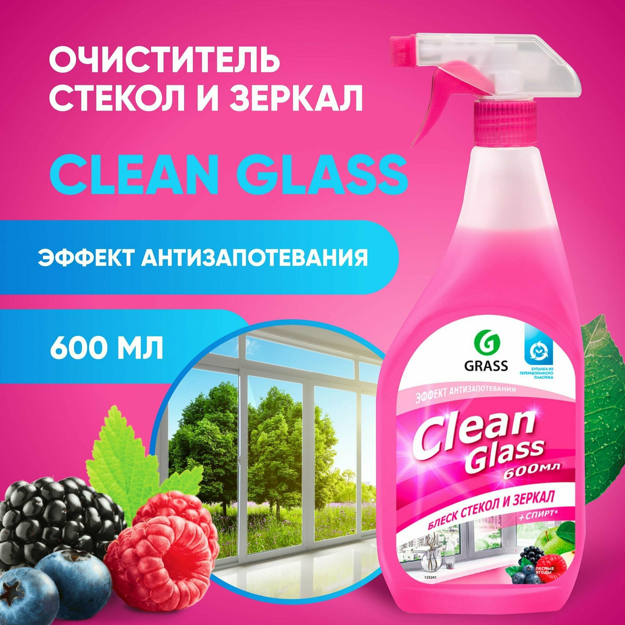 СРЕДСТВО ДЛЯ МЫТЬЯ СТЕКОЛ И ЗЕРКАЛ "CLEAN GLASS" (ЛЕСНЫЕ ЯГОДЫ) 06 Л (1/12) "GRASS"