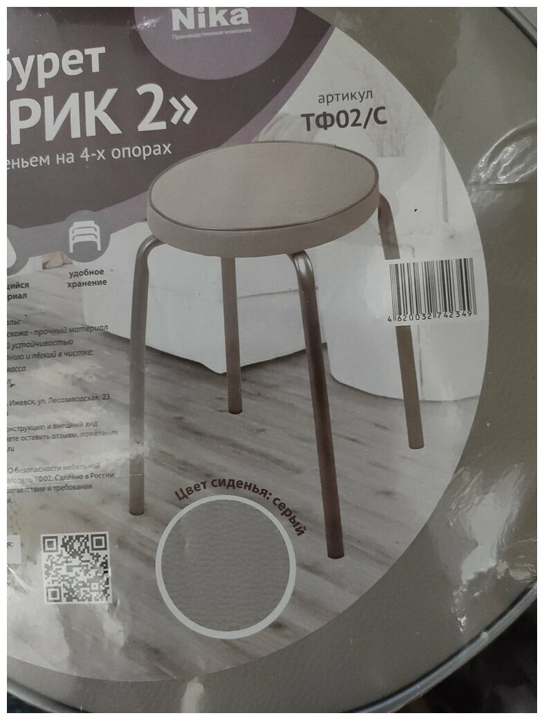 Табурет Ника Фабрик-2 ТФ 02ТС 4 опоры круглое сидение с ободом светло-серый - это стильный и удобный табурет, который станет отличным дополнением для вашей гостиной, кафе, балкона или кухни. Он привлекает внимание своим минималистичным дизайном и комфортным сидением.