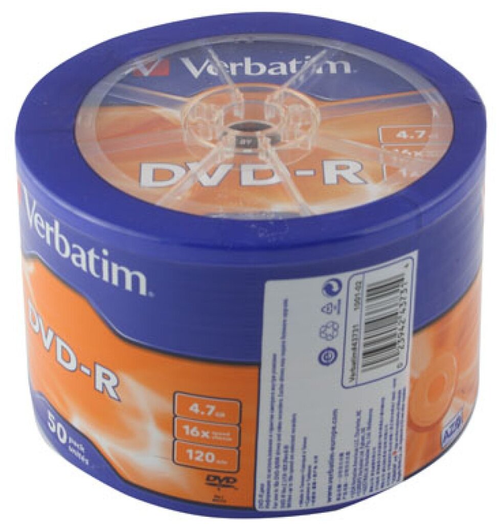 Диски DVD-R Verbatim 16x 4.7Gb Wrap Spindle 50шт 43788