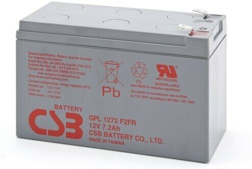 Свинцово-кислотные аккумуляторы CSB GPL1272 обладают увеличенным по сравнению с серией аккумуляторов CSB GP сроком службы до 10 лет или более 260 циклов при работе в циклическом режиме (при 100%-м разряде). Специальное применение: предназначены для резервного питания промышленного оборудования, используются в источниках бесперебойного питания (UPS) и резервного освещения, охранных и пожарных систем, в составе оборудование электросвязи, аварийного освещения, телеметрического оборудования, портативной измерительной аппаратуры, электроинструмента, газонокосилок, вакуумных очистителей, контрольного и другого оборудования при необходимости длительного использования источников питания.. CSB GPL1272 - аккумуляторная батарея, специально рассчитанная на циклы глубокой разрядки, герметизированная необслуживаемая батарея для источников бесперебойного питания (UPS), подходит и для систем резервного освещения на электростанциях и подстанциях, как источник питания в портативном измерительном оборудовании, электроинструментах и многих других технических решениях.