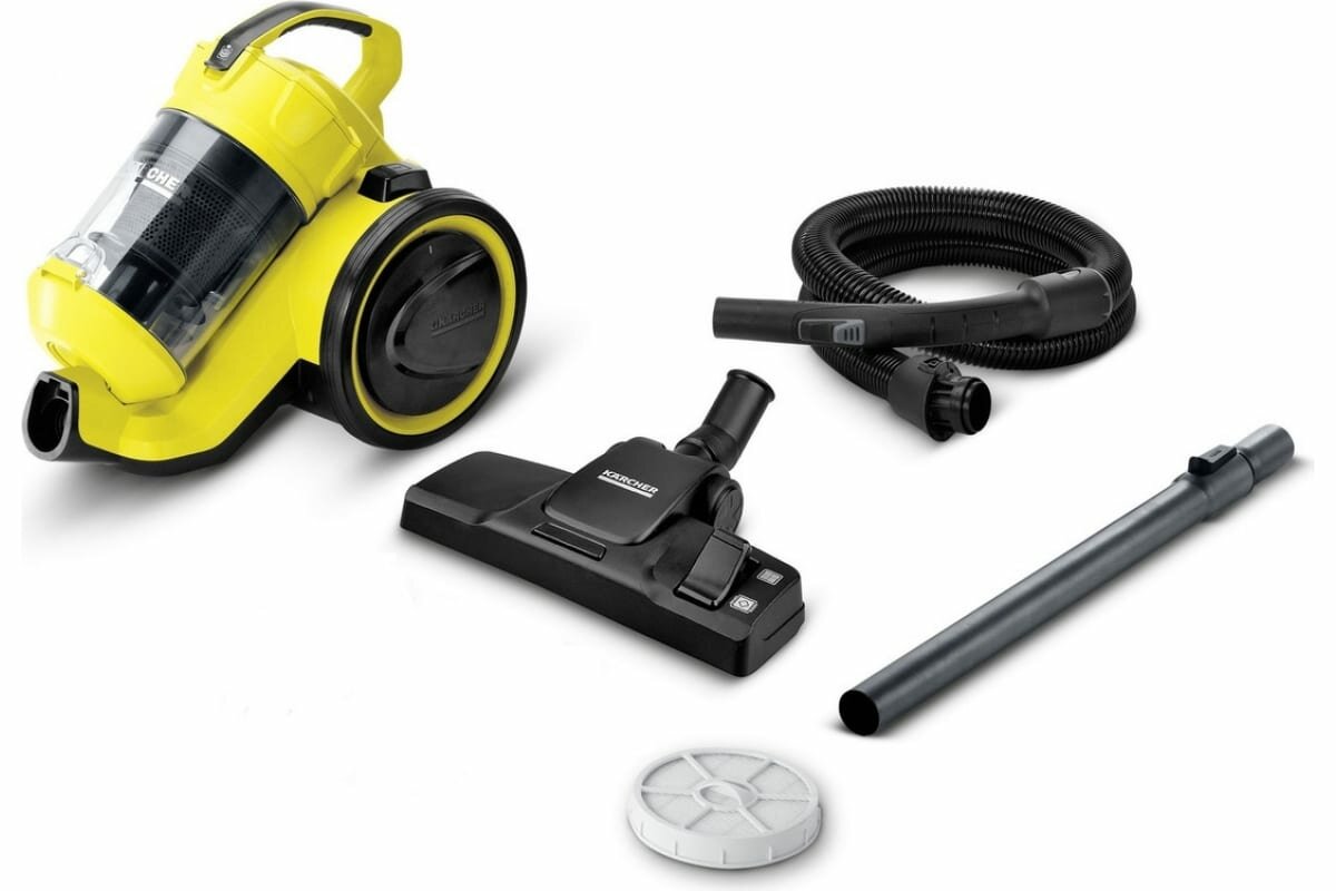 Компактный циклонный пылесос без мешков для сбора пыли Karcher VC 3. Теперь можно забыть о покупке и замене фильтр мешков. Прозрачный контейнер позволяет видеть степень его заполнения, чтобы вовремя осуществить очистку. Благодаря своим компактным размерам циклонный пылесос VC 3 можно использовать в небольших домах и квартирах. Широкий спектр насадок позволяет убираться тщательнее и не только на твердых полах или ковровых покрытиях. Пылесос оснащен фильтром HEPA, который задерживает самые мелкие частицы пыли, которые вызывают аллергию.