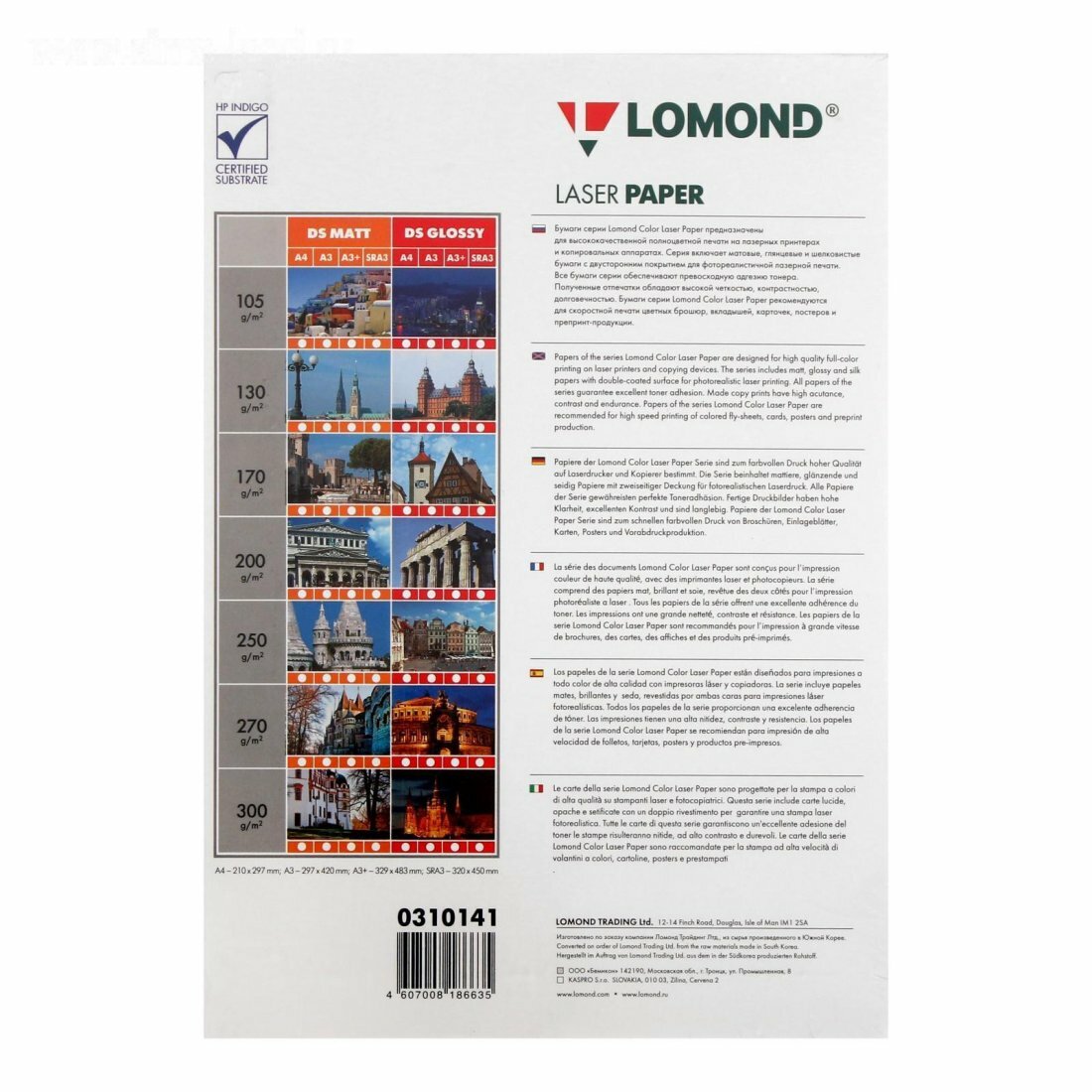 Суперкаландрированная двусторонняя бумага для печати изображений высокого качества с разрешением до 600 dpi. Бумаги серии Lomond Color Laser Paper предназначены для высококачественной полноцветной печати на лазерных принтерах и копировальных аппаратах. Серия включает матовые и глянцевые бумаги с двусторонним покрытием для фотореалистичной лазерной печати. Суперкаландрированная бумага со специальным многослойным покрытием, имеющая многофункциональное назначение обеспечивает превосходную адгезию тонера. Полученные отпечатки обладают высокой четкостью, контрастностью, долговечностью. Бумага Lomond Color Laser Paper рекомендуется для скоростной печати цветных брошюр, вкладышей, карточек, постеров; может с успехом использоваться для производства препринт-продукции. Все бумаги Lomond серии Color Laser сертифицированы для использования на цифровых офсетных машинах HP Indigo (R).