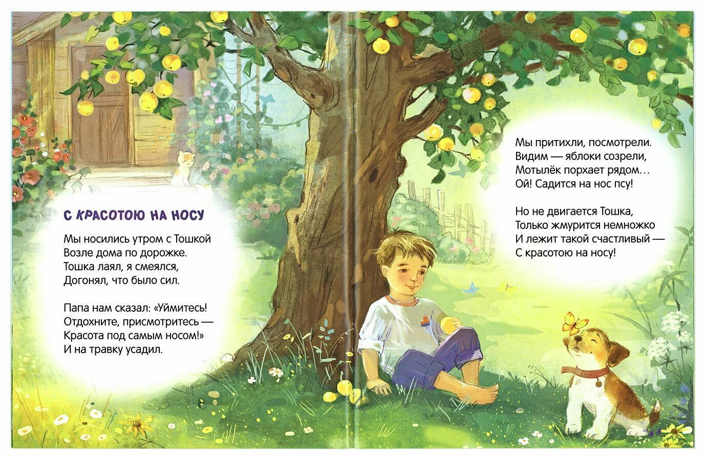 Стихи очень понравились. Они учат доброму отношению ко всему живому, к природе, друзьям. Иллюстрации красочные и красивые! То, что надо маленьким деткам. Есть 2 стихотворения про детский сад: одно про то, что девочка скучает по другу, который пошел в. первый класс, второе - про расставание с детсадом.