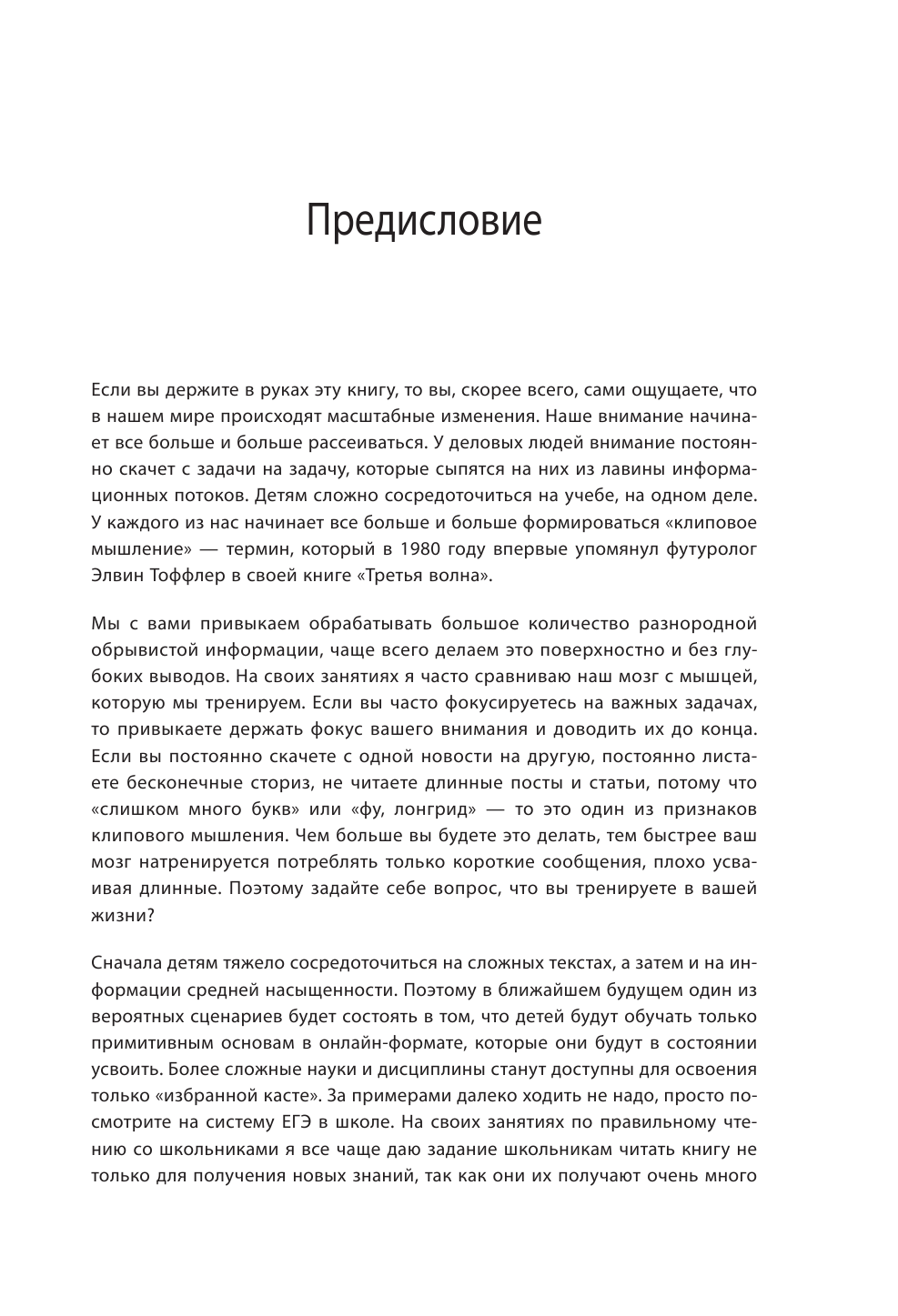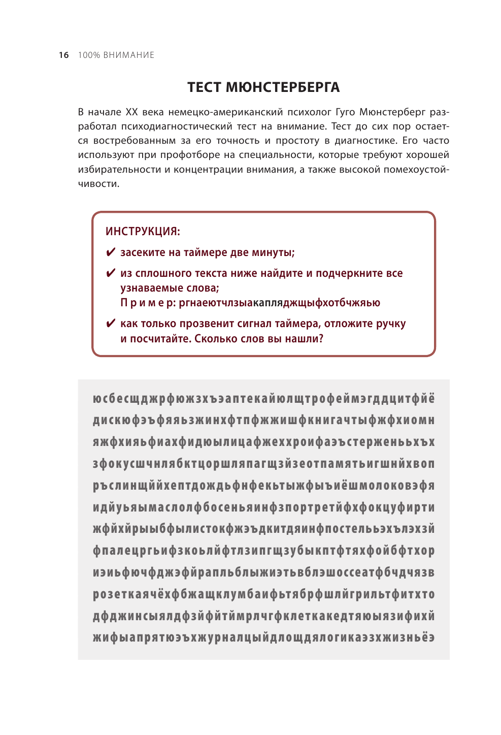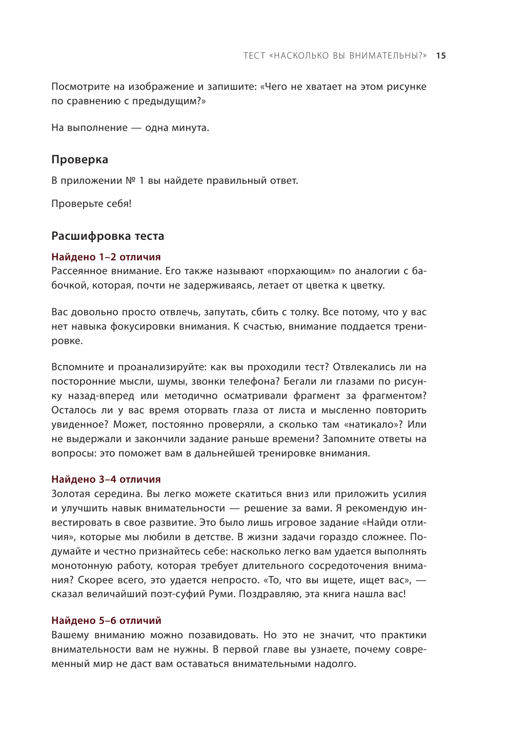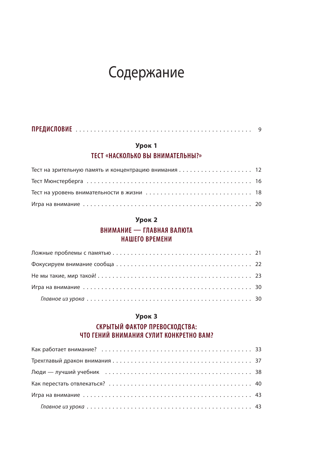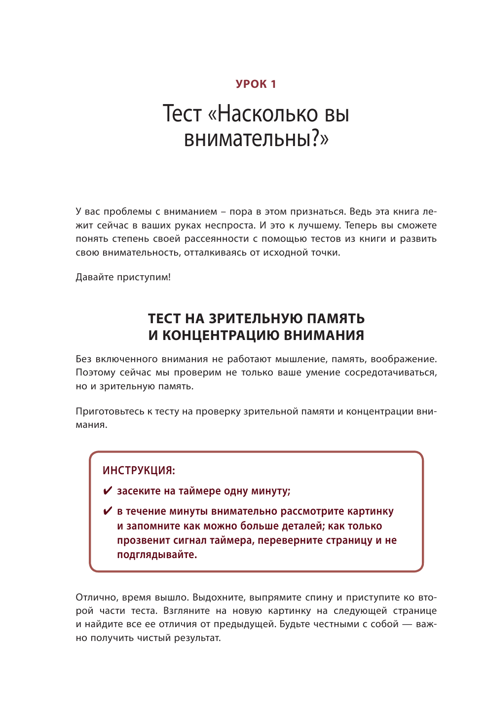 Вы держите в руках книгу-тренажер, которая поможет оставаться внимательным и продуктивным в течение всего дня. Внутри книги: тесты на проверку внимания и памяти, советы по повышению эффективности от российских предпринимателей и психологов, развенчание мифов о многозадачности. Поработав с этой книгой, вы получите множество полезных навыков и вдохновение для дальнейшего личного роста.