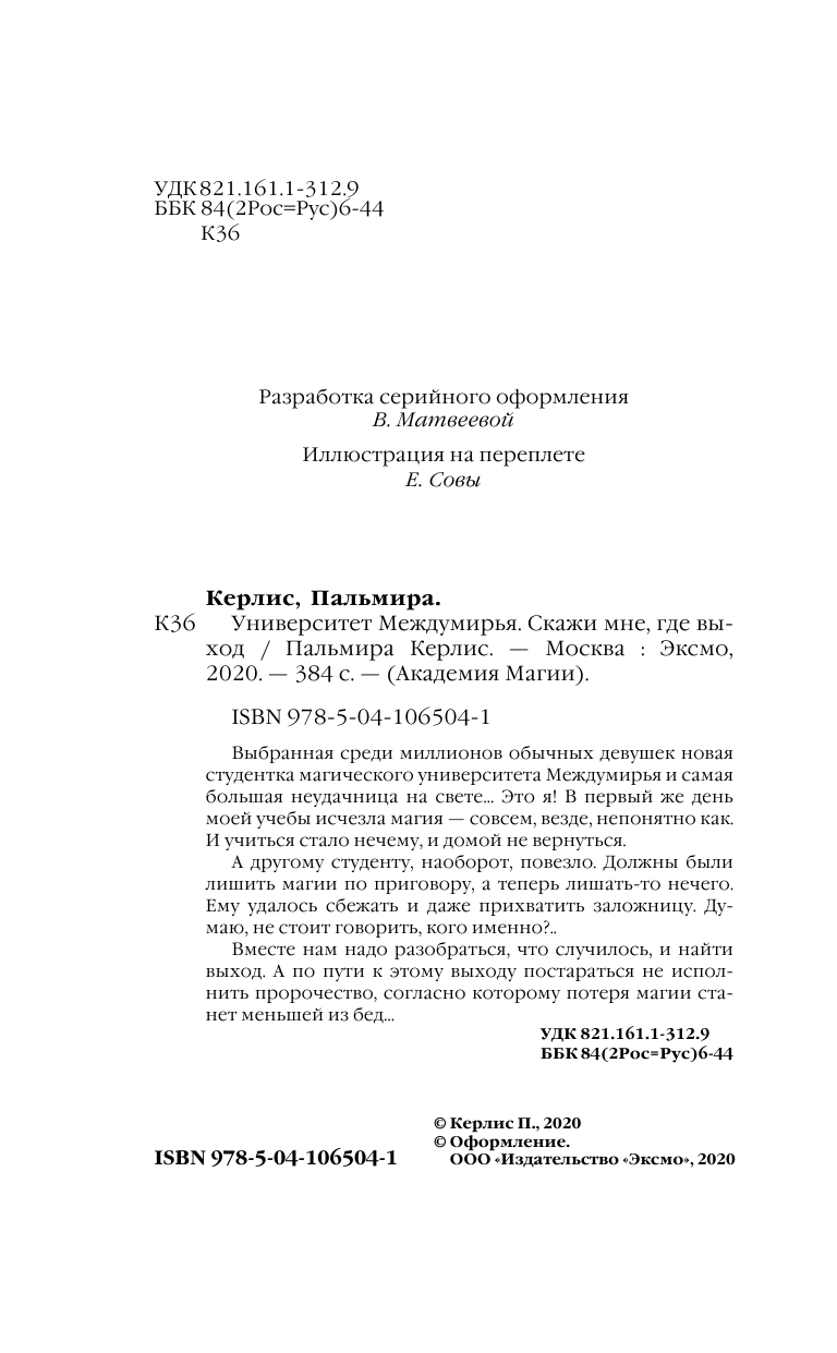 Университет Междумирья. Скажи мне где выход (Пальмира Керлис); Автор, 2018