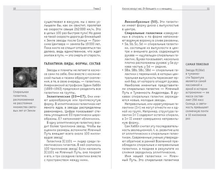 очень интересная и увлекательная книжечка про космос. В ней доступным и популярным языком описаны основные факты, связанные с космосом и космическими исследованиями. В книжке описываются Солнечная система, чёрные дыры, основные вехи космонавтики, МКС, космические роботы и т.д. Книжечка небольшого размера с мягкой обложкой, что позволяет читать её в дороге. Есть чёрно-белые иллюстрации и врезки на полях, в которых описаны некоторые факты. Благодаря доступности изложения материала книжка читается буквально на одном дыхании. Рекомендую всем, кто увлекается наукой, особенно астрономией и космонавтикой.
