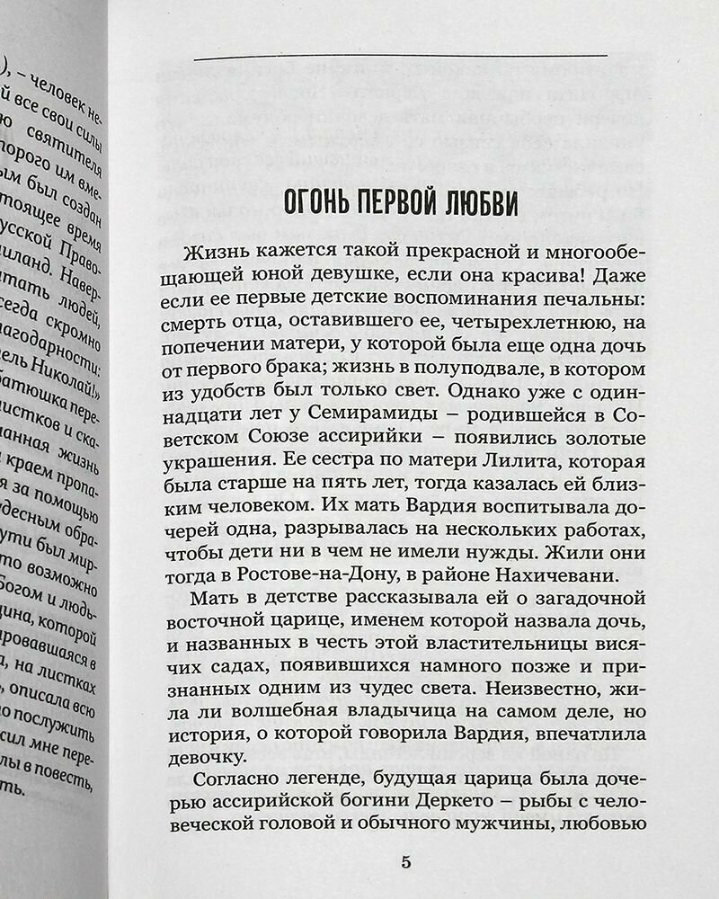 те, которых весь мир не был достоин, скитались по пустыням и горам, по пещерам и ущельям земли’’ (Евр. 11:35-38). И на фоне всего этого, кто же такая Семирамида? Что она сделала? Чем угодила Богу? По своей ли воле претерпела испытания? А если и так, то во имя ли Господа она вынесла всё это? Конечно же, нет! Тогда почему же её история так взволновала наши души, так глубоко проникла в сердце её наивная любовь и доверие к тому великому святому, которому поклоняется весь мир? В первую очередь, наверное, потому, что каждый читатель этой истории видит в Семирамиде самого себя». Другие произведения, вошедшие в книгу, не менее интересны и заслуживают читательского внимания. -