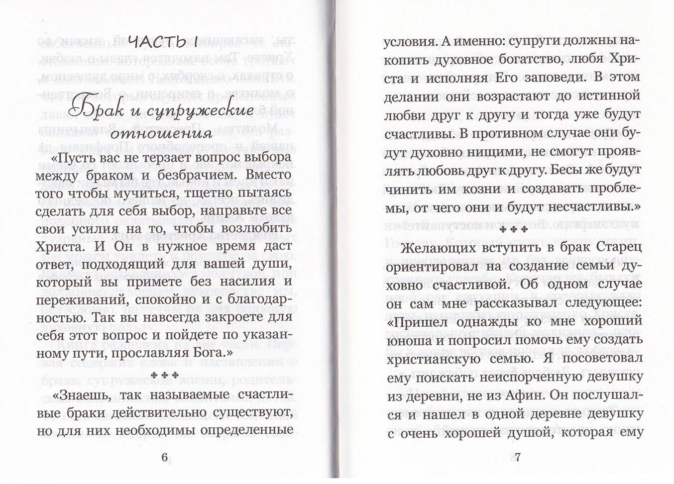 Перед вами еще одна бесценная книжка о преподобном Порфирии Кавсокаливите. Она составлена из нескольких книг о святом Старце. Частично в ней цитируются слова святого, частично приводится их пересказ, точно сохраняющий смысл его слов. Все это - наставления преподобного Порфирия духовным чадам в их семейной и духовной жизни. И как всякие наставления, они подобны лекарству, которое премудрый врач назначает исходя из болезни и состояния пациента. Слова преподобного охватывают самые разные духовные ситуации, среди которых каждый может увидеть и похожие на свою. Внимая наставлениям с молитвой, читатель, несомненно, получит от них большую духовную пользу.