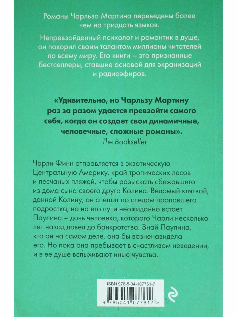 "Чарли Финн отправляется в экзотическую Центральную Америку, край тропических лесов и песчаных пляжей, чтобы разыскать сбежавшего из дома сына своего друга Колина. Ведомый клятвой, данной Колину, он спешит по следам пропавшего подростка, но на его пути неожиданно встает Паулина – дочь человека, которого Чарли несколько лет назад довел до банкротства. Знай Паулина, кто он на самом деле, она бы возненавидела его. Но пока она пребывает в счастливом неведении, в ее душе вспыхивают иные чувства.."
