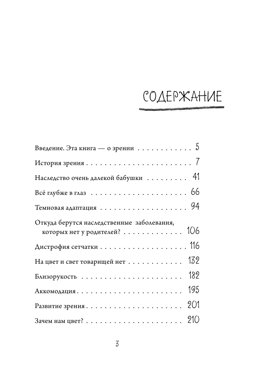 Узнав об этой книге, честно признаюсь, что ожидала увидеть традиционную анатомию глаза, классификацию детских болезней и руководство по их лечению. Но не тут -то было... Когда прочла пролог и увидела необычные иллюстрации органа зрения, поняла - это точно не учебник. Книга захватывает с первых строк. Используя художественный стиль, автор очень легко и доступно пишет не только о болезнях глаз, а и механизме зрения.