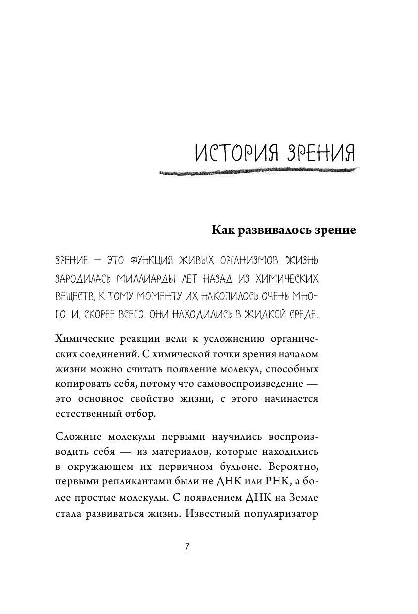 В этой книге Вадим Бондарь, детский офтальмолог с опытом работы более 18 лет, делится с нами интересными фактами о зрении и заболеваниях глаз, некоторые причины которых корнями уходят в далекое прошлое, к нашим первым предкам.