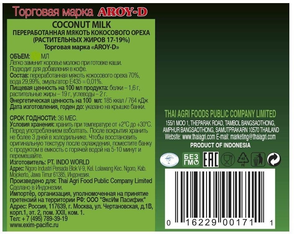 | Изготовитель | Thai Agri Foods Public Company Limited |