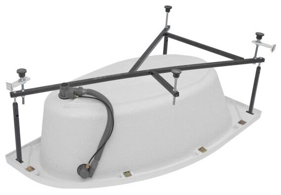 Каркас сварной для акриловой ванны Aquanet Mia 140x80 L/R имеет усовершенствованную конструкцию и позволяет надежно установить ванну. В процессе производства он подвергается трехступенчатой обработке, когда сначала профильная труба проходит абразивную зачистку на специальном станке, после сварки ее обрабатывают каустической содой, и, просушив, покрывают с помощью электростатического распылителя молотковой краской по металлу. Это гарантирует равномерность окрашивания и стойкость покрытия, благодаря чему каркас выглядит аккуратно и не ржавеет. Прост в установке. Расстояние от пола до нижней поверхности дна ванны можно регулировать максимально до 10 см с помощью ножек.