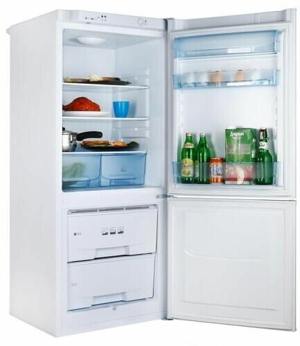 Двухкамерный холодильник Pozis оснащен морозильной камерой объемом 80 л. Внутри холодильного отделения расположены 3 стеклянные полки и 2 ящика для фруктов и овощей. Полки из ударопрочного стекла выдерживают нагрузку до 40 кг. Их легко можно перемещать по высоте, что дает возможность разместить продукты в холодильной камере, максимально используя ее объем. Размораживается холодильное отделение капельным способом.