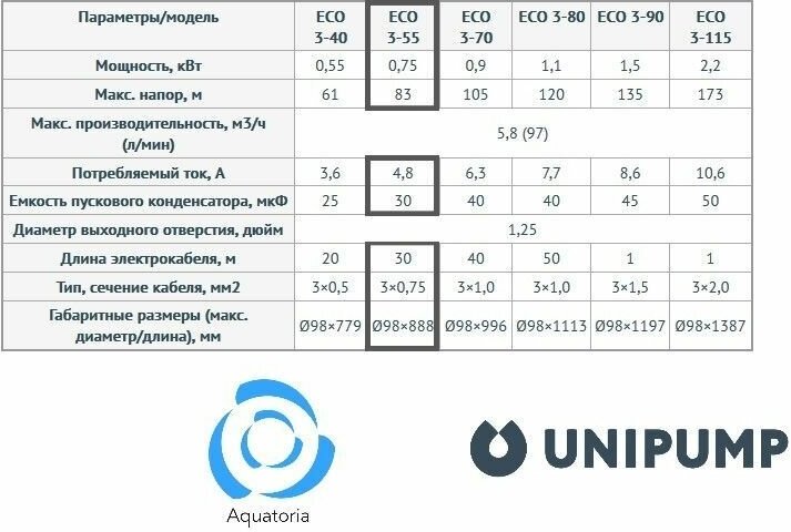 - Скважинный насос Unipump Eco 3-55 | ОТЗЫВЫ | ЦЕНА | КУПИТЬ